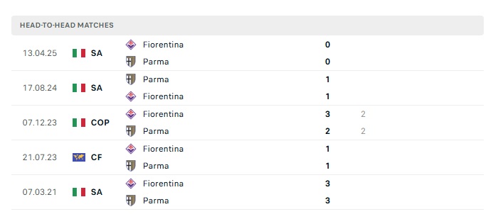 - Kèo tỷ số H2 Parma vs Fiorentina: 0-0