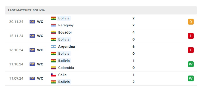 Đương nhiên, phong độ thi đấu của Peru chắc chắn sẽ kém xa so với đối thủ Bolivia. Theo ghi nhận, Peru đang chỉ thắng duy nhất 1 trong 9 trận đấu gần nhất, còn lại là 5 thua và 3 trận hòa. Trong khi đó thì Bolivia đã có cho mình 3 chiến thắng, hòa 1 và chỉ thua 2 trong 6 trận đấu gần nhất. Thế nên các chuyên gia đều tin rằng đội khách sẽ có ít nhất là 1 điểm trong chuyến làm khách hôm nay.