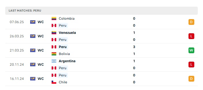 - Phong độ gần đây Peru
