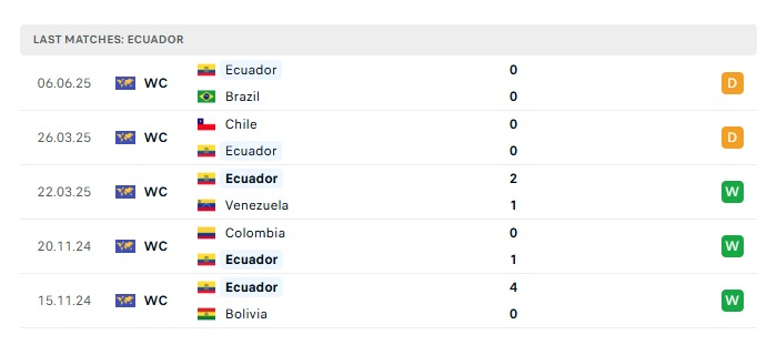 - Phong độ gần đây Ecuador