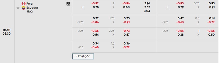 Soi kèo châu Á, kèo Peru vs Ecuador