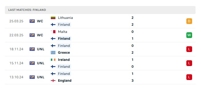 • Phong độ gần đây Phần Lan