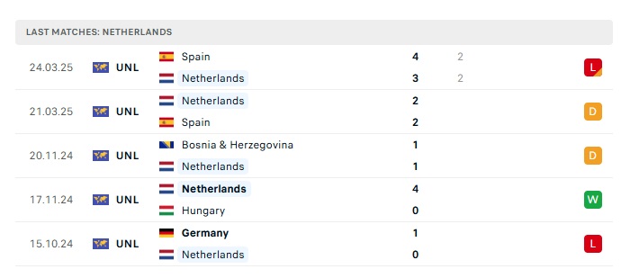 • Phong độ gần đây Hà Lan