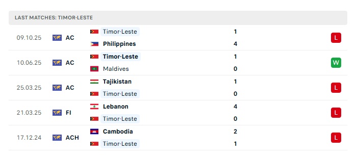 - Phong độ gần đây Đông Timo