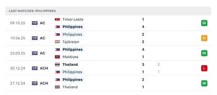 - Phong độ gần đây Philippines
