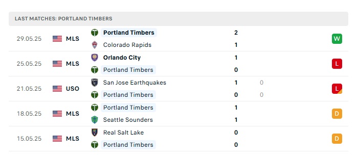 Phong độ gần đây Portland Timbers vs St. Louis City SC