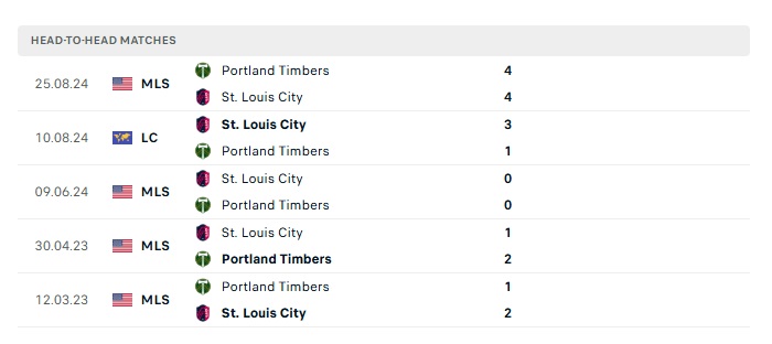 Lịch sử đối đầu Portland Timbers vs St. Louis City SC