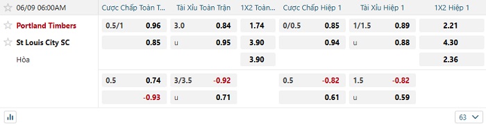 - Kèo tỷ số H1 Portland Timbers vs St. Louis City SC: 1-0