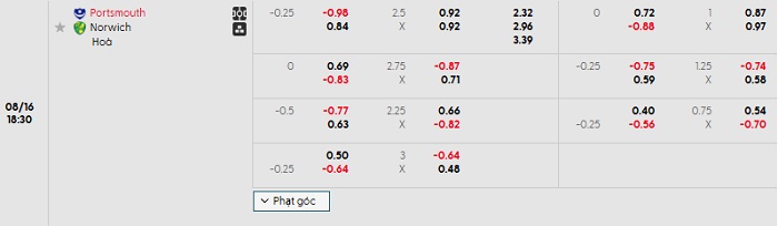 Soi kèo châu Á, kèo Portsmouth vs Norwich