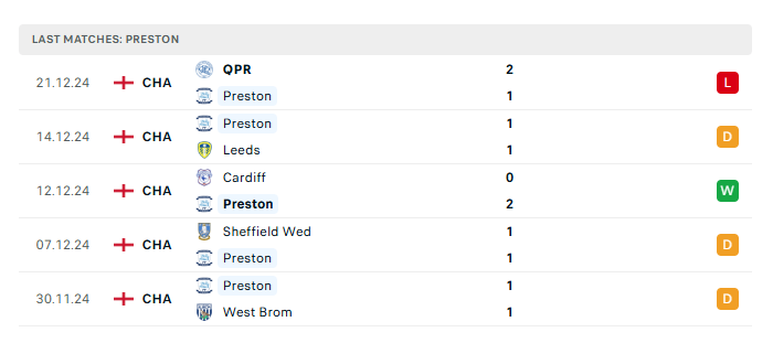 - Phong độ gần đây Preston