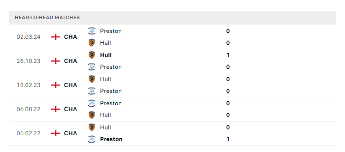 Lịch sử đối đầu Preston vs Hull City