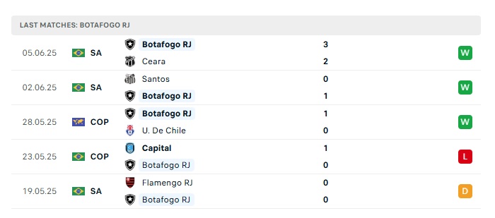 Phong độ gần đây PSG  vs Botafogo/RJ