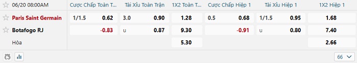 Bảng tỷ lệ kèo nhà cái PSG vs Botafogo/RJ