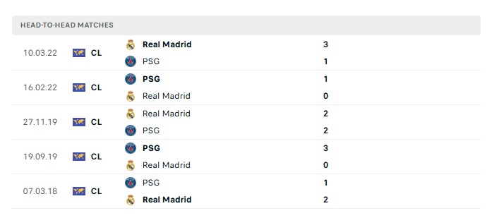 - Kèo tỷ số H2 PSG vs Real Madrid: 1-0
