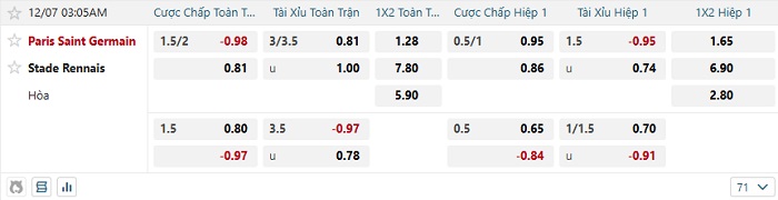 Bảng kèo nhà cái PSG vs Stade Rennais