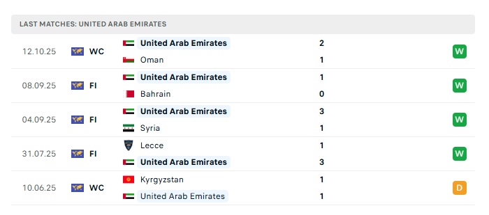 • Phong độ gần đây UAE