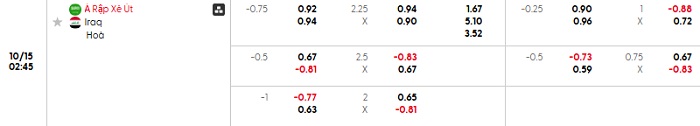 Bảng tỷ lệ kèo nhà cái Ả Rập Xê Út vs Iraq
