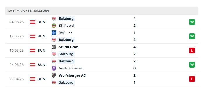 • Phong độ gần đây RB Salzburg