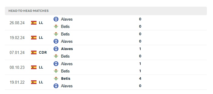 - Kèo tỷ số H2 Real Betis vs Alaves: 3-0