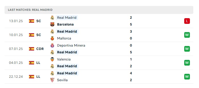- Phong độ gần đây Real Madrid
