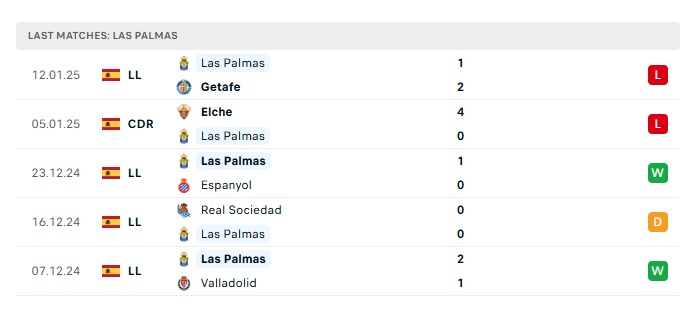 - Phong độ gần đây Las Palmas