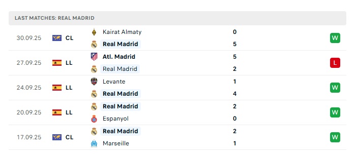 - Phong độ gần đây Real Madrid