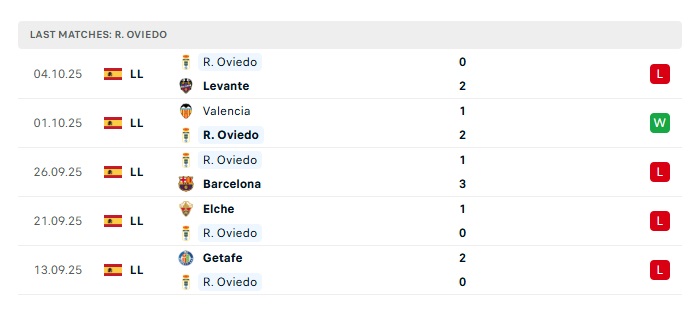 - Phong độ gần đây Real Oviedo