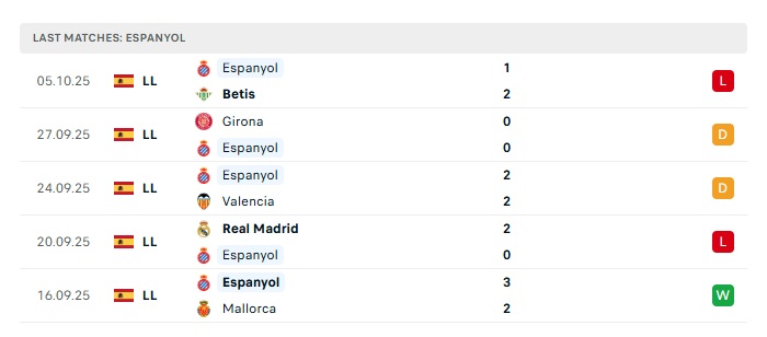 - Phong độ gần đây Espanyol
