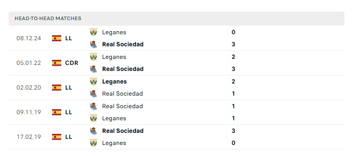 Lịch sử đối đầu Real Sociedad vs Leganes