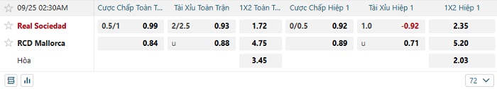 Soi kèo châu Á, kèo Real Sociedad vs Mallorca