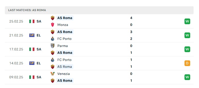 Như đã biết thì Roma sau khoản thời gian bết bát đầu mùa, họ đang dần chơi tốt và ổn định hơn rất nhiều. Trong 9 trận đấu gần đây nhất của Roma, họ được ghi nhận chỉ thua 1, hòa 2 và thắng đến 6. Trong khi đó thì 7 trận đã qua của Como đã khép lại mà họ chỉ có cho mình 3 thắng thua 4. Do đó, đội chủ nhà sẽ rất tự tin có cho mình 1 chiến thắng trọn vẹn trước đối thủ ngày hôm nay.
