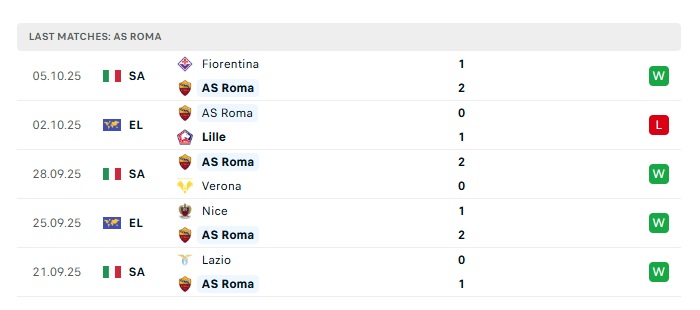- Phong độ gần đây Roma