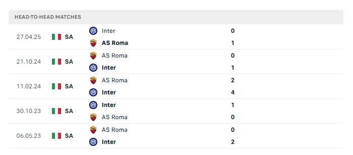 Phong độ gần đây Roma vs Inter Milan