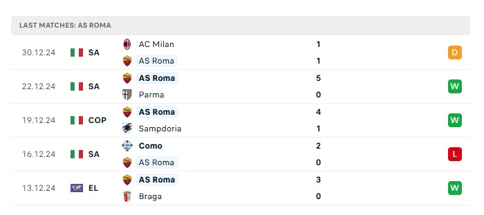 - Phong độ gần đây Roma