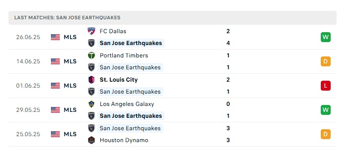 Phong độ gần đây San Jose EQ vs LA Galaxy