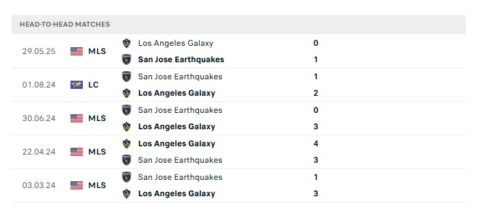 Lịch sử đối đầu San Jose EQ vs LA Galaxy