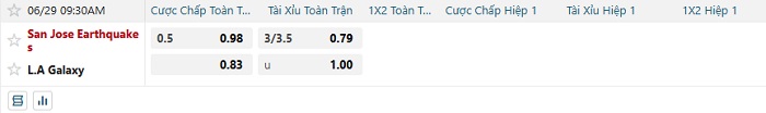 Bảng tỷ lệ kèo bóng đá hôm nay San Jose EQ vs LA Galaxy