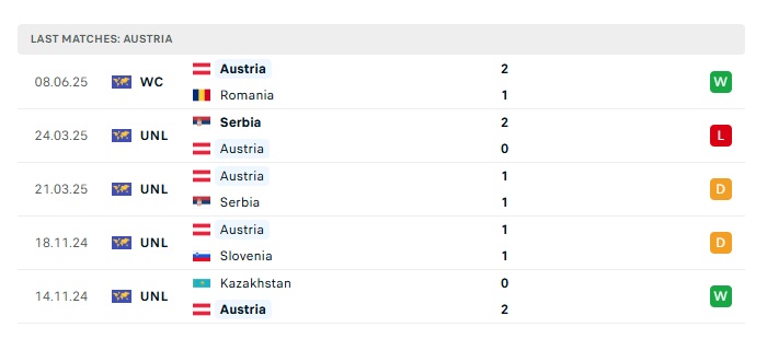 - Phong độ gần đây Áo