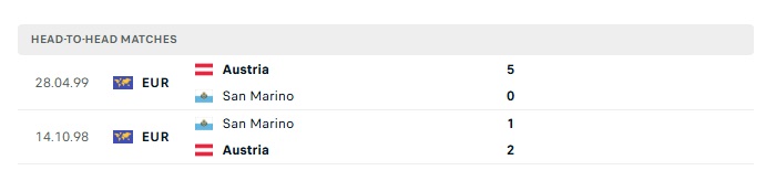Lịch sử đối đầu San Marino vs Áo