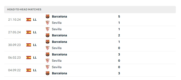 Lịch sử đối đầu Sevilla vs Barcelona