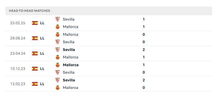 - Kèo tỷ số H2 Sevilla vs Mallorca: 3-1