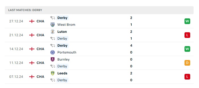 • Phong độ gần đây Derby County