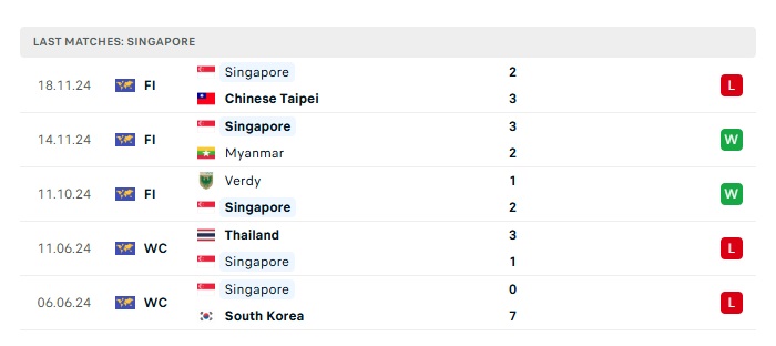 • Phong độ gần đây Singapore