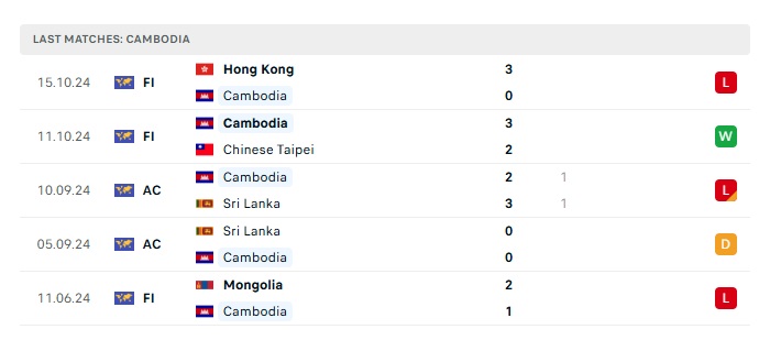 • Phong độ gần đây Campuchia