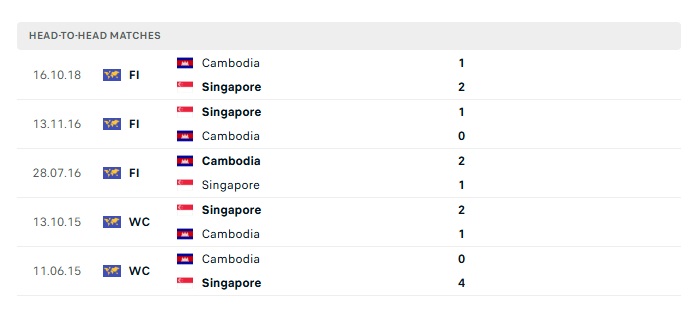 Lịch sử đối đầu Singapore vs Campuchia