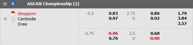 Bảng tỷ lệ kèo bóng đá Singapore vs Campuchia