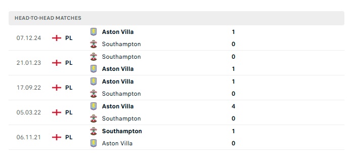 Bảng kèo bóng đá Southampton vs Aston Villa