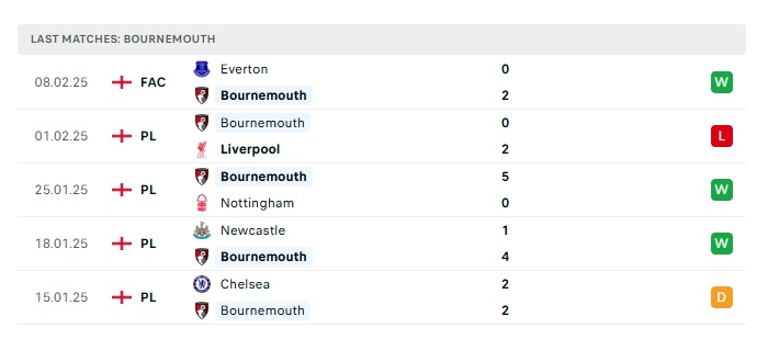 - Phong độ gần đây Bournemouth