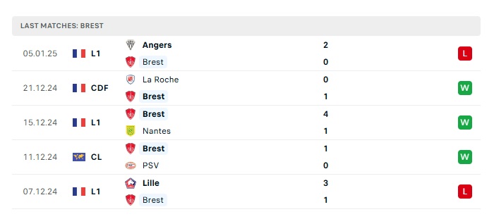 - Phong độ gần đây Stade Brestois