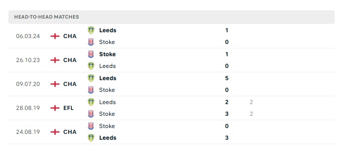 Nhìn vào sự chênh lệch quá lớn của hai đội sẽ khiến cho trận đấu hôm nay khép lại với 1 chiến thắng cho đội khách. Nên biết rằng Leeds đã có cho mình 6 thắng, 1 hòa và 1 thua trong 8 trận đấu gần nhất của mình. Ngoài ra thì 5 lần đụng độ nhau gần nhất của hai đội, Stoke chỉ thắng 1, hòa 1 và Leeds thắng 3. Do đó, đầu tư vào đội khách sẽ là lựa chọn an toàn nhất dành cho người hâm mộ.